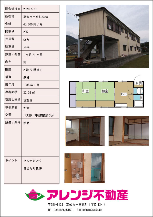 高知市一宮東町のアレンジ不動産・賃貸・売買ご相談ください。